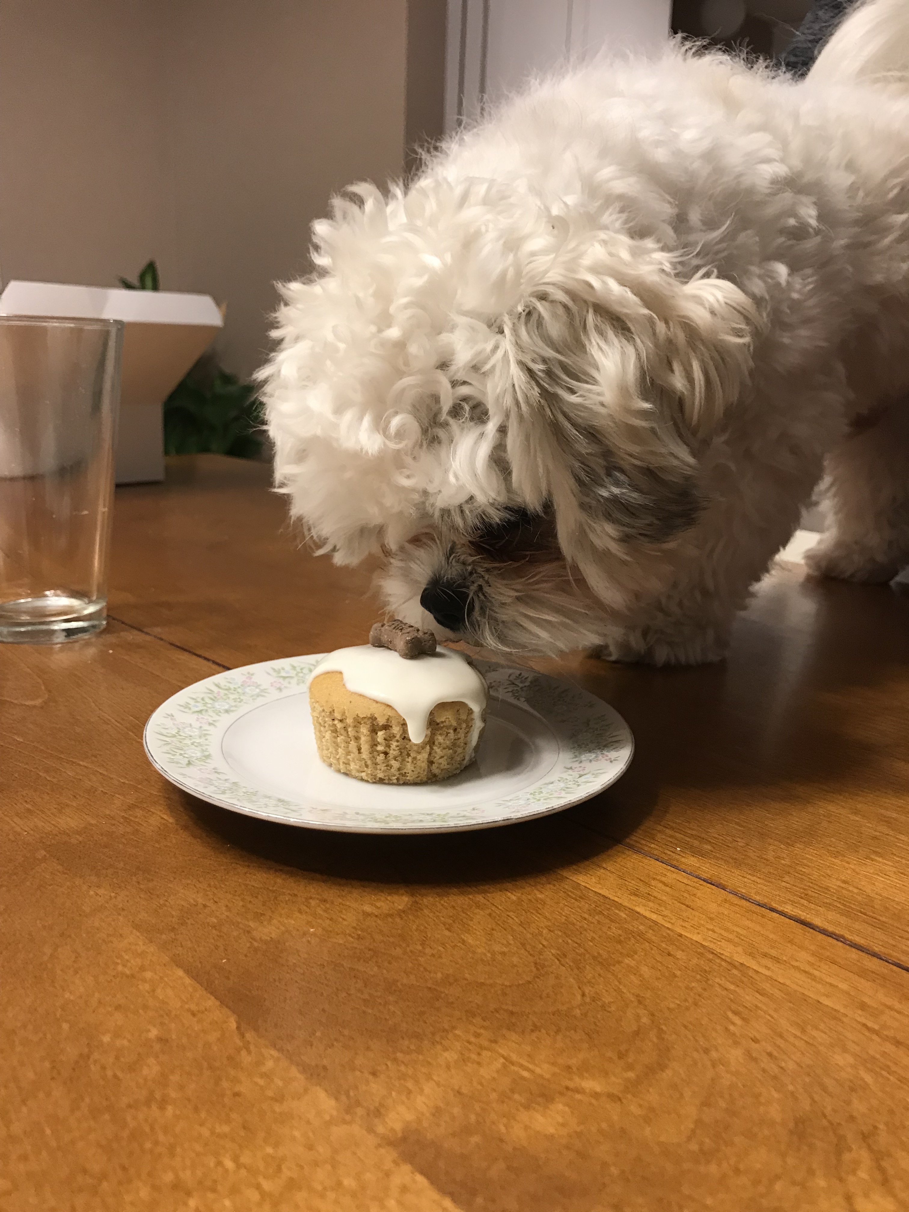 Here is my dog Koda enjoying a homemade dog-friendly cupcake!